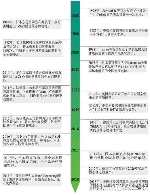 圖:全固態鋰電池發展大事件圖